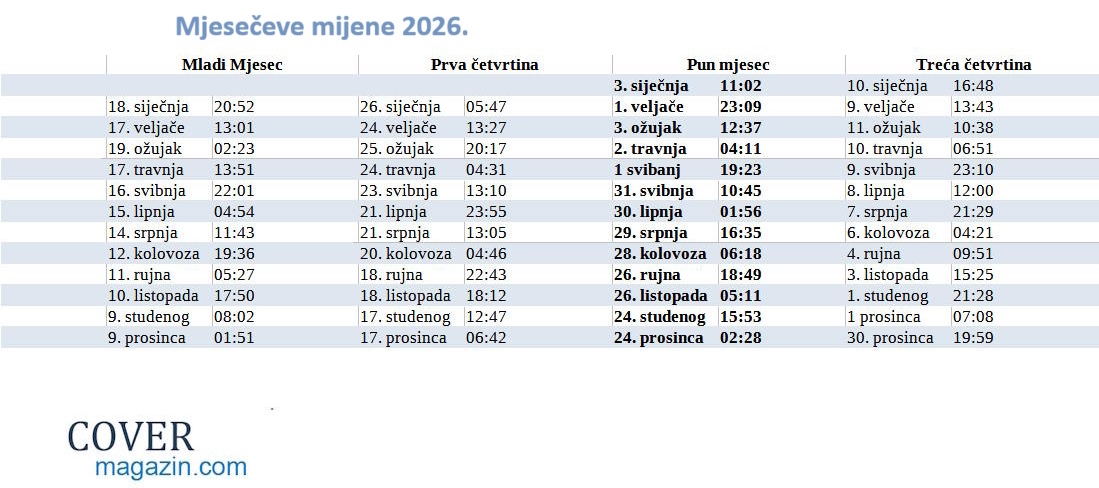 Mjesečeve mijene 2026.